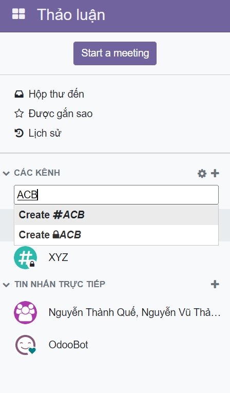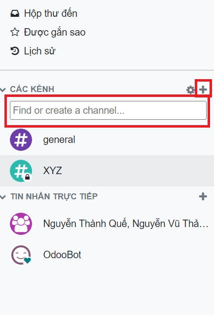 Các kênh, tin nhắn trực tiếp và các cuộc trò chuyện trực tiếp (nếu mô-đun được cài đặt trên cơ sở dữ liệu của bạn) được ghim trong thanh bên, có thể được tìm bằng thanh Tìm hoặc tạo kênh. Đó là một cách nhanh nhất để lọc các cuộc trò chuyện và nhanh chóng tìm thấy cuộc trò chuyện bạn cần.