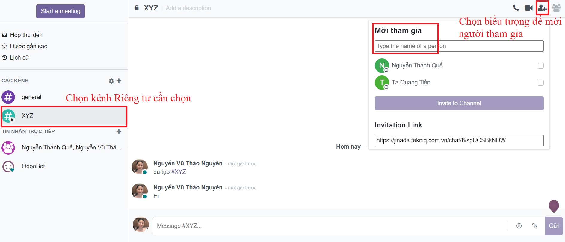 Nếu bạn chọn Chỉ những người được mời, hãy chuyển đến tab Thành viên để thêm thành viên của bạn hoặc chuyển đến trang chính của Thảo luận, chọn kênh và nhấp vào Mời.