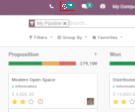 Truy cập và quản lý các hoạt động của bạn mọi lúc mọi nơi trong Odoo bằng menu Hoạt động.