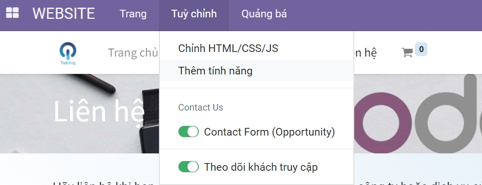 Có thể kích hoạt hoặc hủy kích hoạt Biểu mẫu liên hệ bất kỳ lúc nào bằng cách truy cập Trang web ‣ Truy cập trang web ‣ Tùy chỉnh ‣ Biểu mẫu liên hệ.