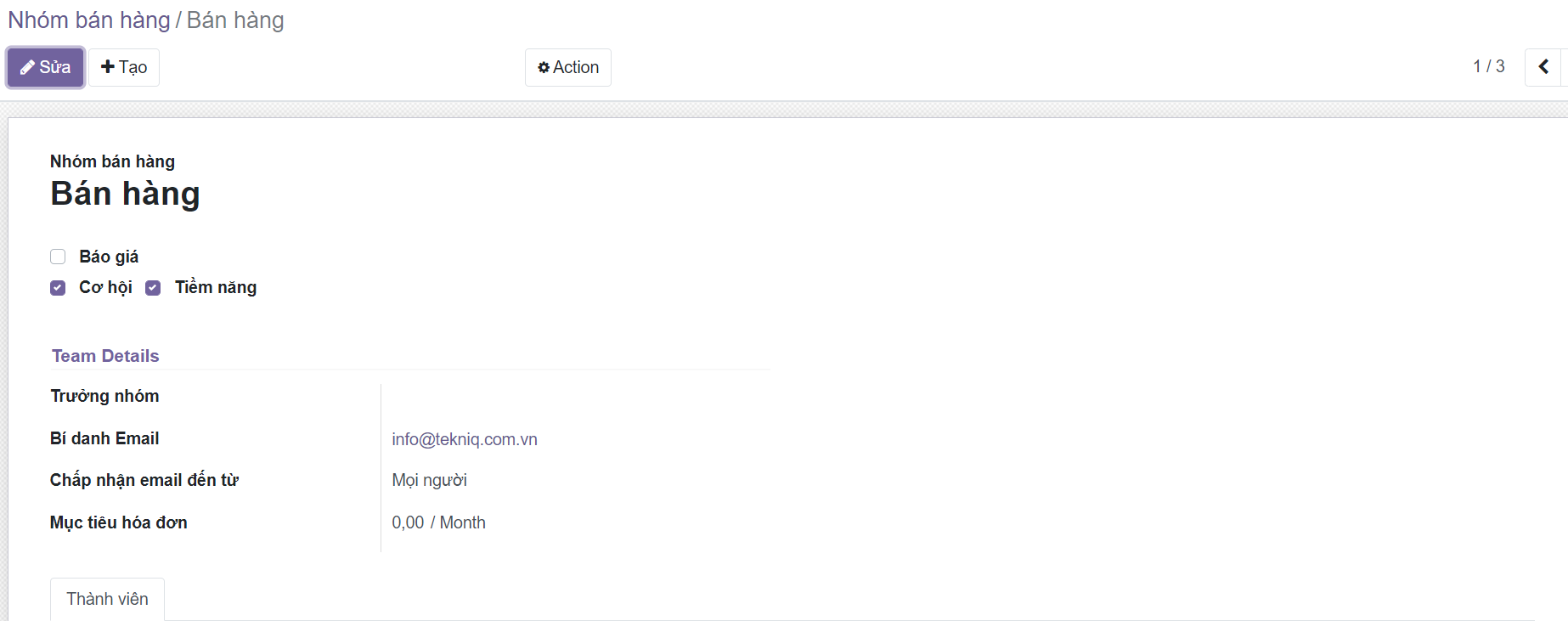 Mỗi Nhóm bán hàng có thể sử dụng email alias duy nhất của riêng mình để tạo khách hàng tiềm năng / cơ hội. Bất kỳ email nào được gửi đến email alias của Nhóm bán hàng sẽ tự động tạo khách hàng tiềm năng (nếu khách hàng tiềm năng được kích hoạt trong cài đặt CRM của bạn) hoặc một cơ hội trong quá trình cho nhóm cụ thể đó. Định cấu hình email alias tùy chỉnh trên trang cấu hình cho từng Nhóm bán hàng bằng cách điều hướng đến CRM ‣ Cấu hình ‣ Nhóm bán hàng.