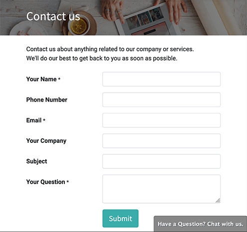 Biểu mẫu liên hệ có thể được tùy chỉnh cho thông tin cụ thể mà nhóm của bạn cần, bằng cách sử dụng mô-đun Trình tạo biểu mẫu miễn phí.