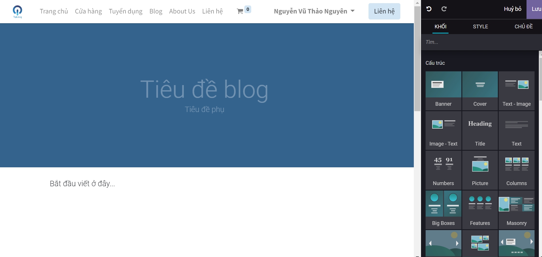 Bạn có thể chọn "Blog" trên menu của Trang Web để viết bài theo những Mục đã tạo sẵn
